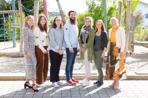 Rektorin Tanja Anthofer (rechts) und Konrektorin Michaela Schmid (links) freuen sich über die Neuen im Team: v.l.n.r.: