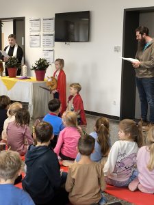 Die Kinder der ersten und zweiten Klassen feierten am Gedenktag des Heiligen Martins eine Andacht.