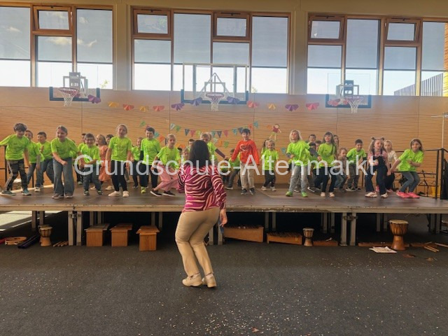 Zahlreiche musikalische Beiträge wie „Der tanzende Alpaka (2aG und 2c), der Fische Blubber Song (2b) oder das Lied der langen Schlangen (Klasse 1d) wurden abgewechselt von Tanzeinlagen wie z.B. einem Line Dane der Erstklässler und dem Tanz „you made me look“ der Klasse 4aG. Bei der Neuinszenierung des Liedes „Im Walde von Toulouse“ als Tanztheater zeigte die Klasse 4c ihr schauspielerisches Geschick, das im Publikum sogar zum Gruseln anregte. Zwischen den Beiträgen der Klassen sorgten die Flötenkinder der ILE-Musikschule immer wieder für Begeisterung mit ihren Stücken. Für eine willkommene Auflockerung sorgte die Klasse 3b mit dem Körperteile- Blues, den auch die Zuschauer fleißig mitmachten. Weitere Stücke wie das Lied „Der Kuckuck und der Esel“, vorgetragen von dem Chor der Klassen 1 / 2 unter der Leitung von Frau Schmid Liselotte oder der „Wellerman Song“ der Klasse 3c ernteten großzügig Applaus. Staunend wurden die Percussion – Polka der Klasse 4b und die Umsetzung von „Soco Bace Vira“ vom Publikum mitverfolgt. Die Aussagen im Lied des Chores „Wir sind Wunderkinder“ bekräftigte Frau Anthofer in ihren Schlussworten. Nach den Dankesworten von Frau Anthofer, die sich an alle, die zum Gelingen des Festes beigetragen hatten, richteten, folgte der kulinarische Teil des Festes: Der Elternbeirat um Manuela Wotsch und Carola Schweizer hatten allerhand zu bieten: Von Grillteller über Wurstsalat, Eis, Kaffee und Kuchen ließ das reichhaltige Angebot, das durch die Mithilfe Vieler präsentiert werden konnte, kaum Wünsche offen.