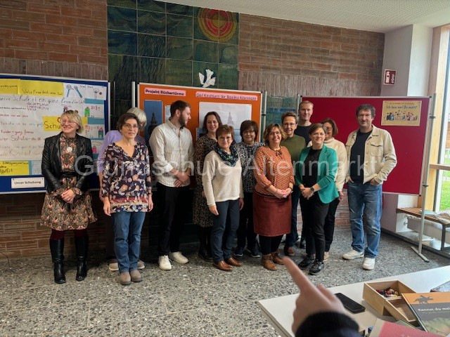 • Mitglieder der Schulfamilie lesen vor: Jede/, die/der möchte (Lehrkräfte, Sekretariat, Schülerinnen und Schüler) sucht sich ein Buch aus, das er vorlesen will. Zu diesem Buch gibt es dann einen Aushang mit Kurzvorstellung und Cover. Wer vorliest wird nicht verraten. Die Kinder können sich die Auswahl dann 1-2 Tage anschauen und dann werden Listen ausgehängt (mit einer begrenzten Zahl an Plätzen) und die Schüler tragen sich ein; am Vorlesetag selbst stehen die Vorleser/-innen mit dem Buch in der Pausenhalle und holen ihre Gruppe ab.
