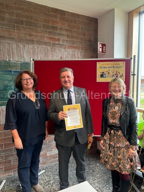 • Mitglieder der Schulfamilie lesen vor: Jede/, die/der möchte (Lehrkräfte, Sekretariat, Schülerinnen und Schüler) sucht sich ein Buch aus, das er vorlesen will. Zu diesem Buch gibt es dann einen Aushang mit Kurzvorstellung und Cover. Wer vorliest wird nicht verraten. Die Kinder können sich die Auswahl dann 1-2 Tage anschauen und dann werden Listen ausgehängt (mit einer begrenzten Zahl an Plätzen) und die Schüler tragen sich ein; am Vorlesetag selbst stehen die Vorleser/-innen mit dem Buch in der Pausenhalle und holen ihre Gruppe ab.