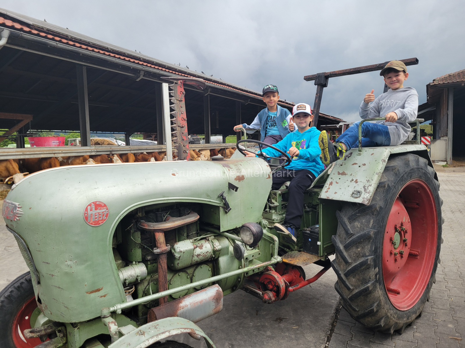 Mit großem Engagement hatte Familie P. diese kurzweilige, lehrreiche und kindgerechte Exkursion vorbereitet – mit Struktur, Herz und ganz viel Liebe zum Detail. Im Mittelpunkt stand das Ziel, den Kindern einen direkten Zugang zur heimischen Landwirtschaft zu ermöglichen. Denn wer einmal selbst Kühe gefüttert, Mehl gemahlen und Traktoren bestiegen hat, weiß: Milch kommt nicht aus der Packung, und Getreide wächst nicht im Regal.