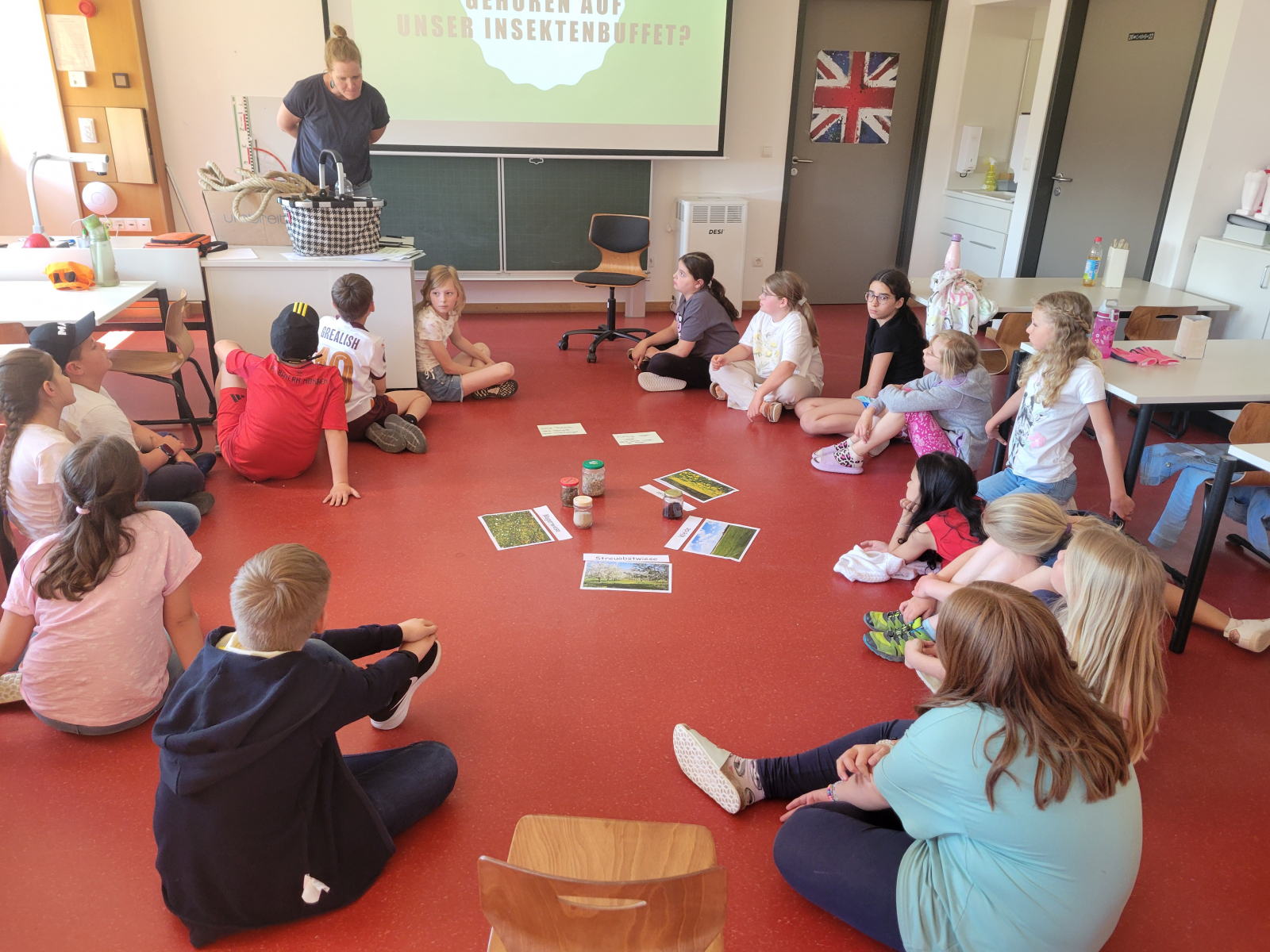 Auch bei der Auseinandersetzung mit dem Thema Insektenhotels ging es ins Detail. Die Kinder lernten, wie man gute von wirkungslosen oder gar schädlichen Modellen unterscheidet. „Zapfen und Ziegel mit übergroßen Löchern mögen dekorativ wirken, bringen aber oft keinen ökologischen Nutzen“, so eine der zentralen Erkenntnisse. Ebenso wurde thematisiert, warum Materialien wie Stroh eher ungeeignet sind – etwa weil sie Ohrwürmer anziehen, die wiederum der Wildbienenbrut gefährlich werden können. Ein besonderes Highlight war hierbei der Bau von hochwertigen Röhrennistplätzen für Wildbienen – aus alten Tetrapacks gefertigt, wodurch gleichzeitig ein sinnvoller Upcycling-Effekt entstand. Auf dem Schulgelände bilden diese einen ersten Baustein für das nächste Projekt, eine große Insektennisthilfe mit Angeboten für die verschiedensten Anforderungen der einzelnen Arten.